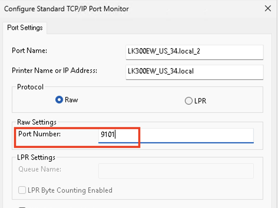 - Geben Sie die IP-Adresse des Printservers in das Feld „Hostname oder IP-Adresse“ ein. (Diese finden Sie auf der Web-Verwaltungsseite.)