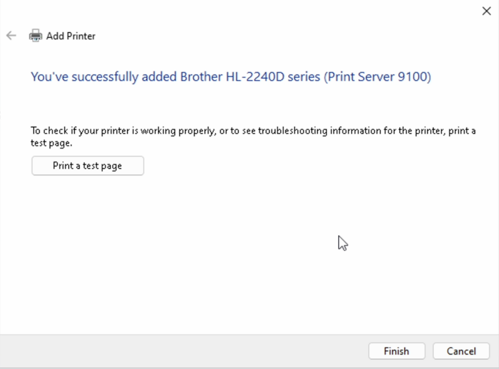 9.After completing the addition, print a test page to verify the settings. If the test page prints successfully, click “Finish,” indicating successful addition of the printer.