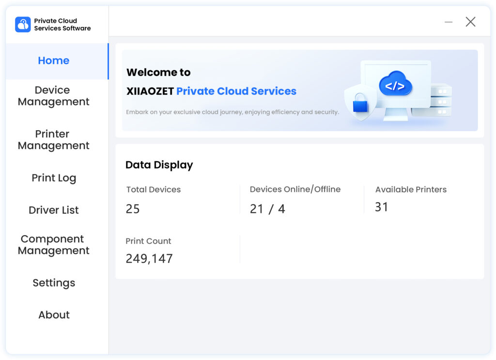 Provides multiple functions such as data statistics, equipment management, printer management, etc.
